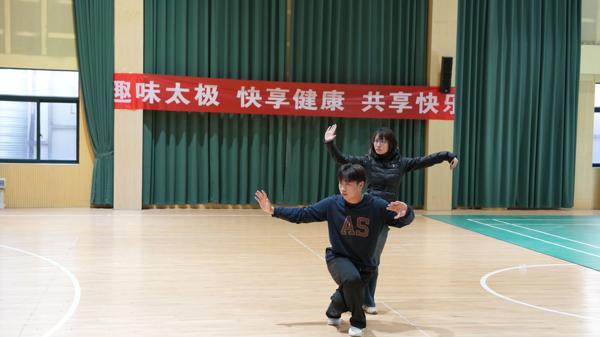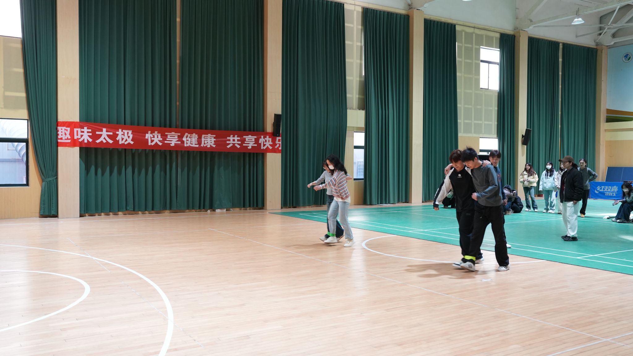 展示环节结束后,趣味十足的太极互动游戏拉开序幕。“两人一足”考验着学子们的平衡感与协作力,大家在轻松对抗中感受“以柔克刚”的精髓;“招式猜猜乐”通过趣味问答形式,让大家在欢笑中巩固太极招式知识,现场氛围热烈而融洽。魏书记主动参与其中,与学生们一同体验游戏乐趣,不时交流互动,拉近了与学子们的距离。