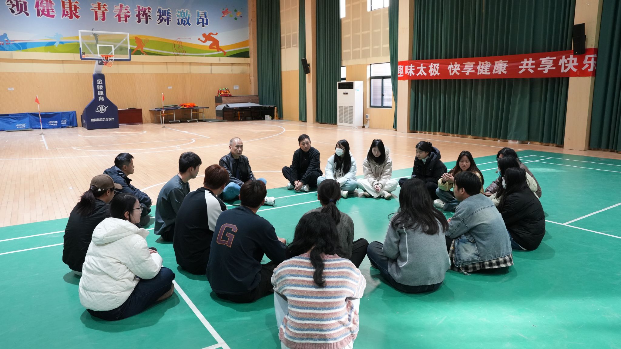 活动尾声,魏书记与学生们围坐一圈,亲切交流。他充分肯定了太极武术社团在传承传统文化、丰富校园生活方面的积极作用,并着重强调了体育锻炼和体育课的重要意义。他指出,体育不仅能强健体魄,更能锤炼意志、培养团队精神,希望同学们能坚持体育锻炼,将太极文化中 “坚韧不拔、谦和包容” 的精神融入学习生活,全面提升综合素质。同时,他鼓励社团继续深耕传统武术文化传播,打造特色校园文化品牌。
