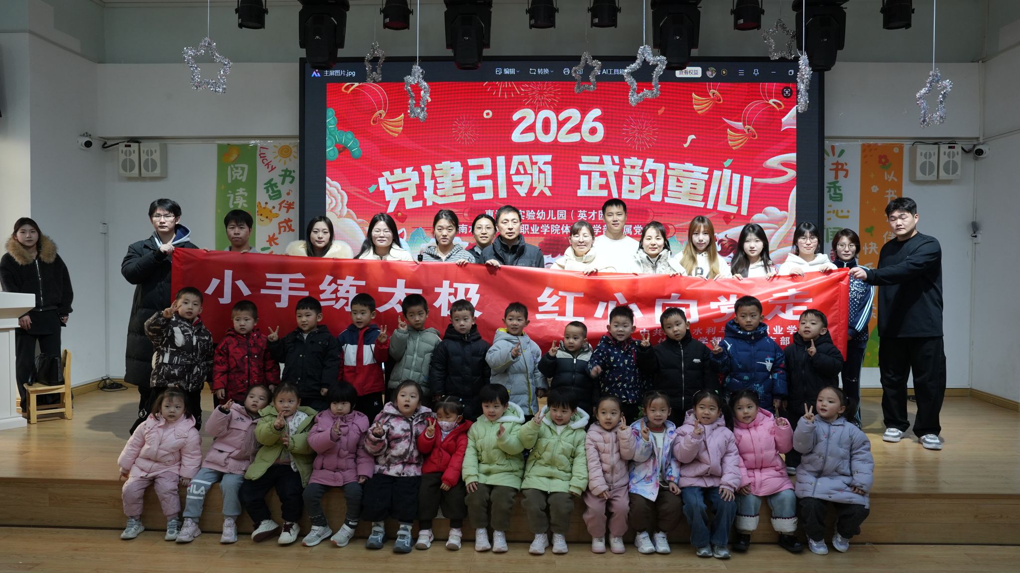为深入推进党建与传统文化传承深度融合,充分发挥党员先锋模范作用,2026年1月6日,中共河南水利与环境职业学院体育教学部直属党支部组织党员志愿者前往惠济区实验幼儿园(英才校区),开展“小手练太极,红心跟党走”主题党建志愿活动。活动以太极文化为载体,将红色教育与传统体育文化相结合,为孩子们带来了一场别开生面的文化盛宴。